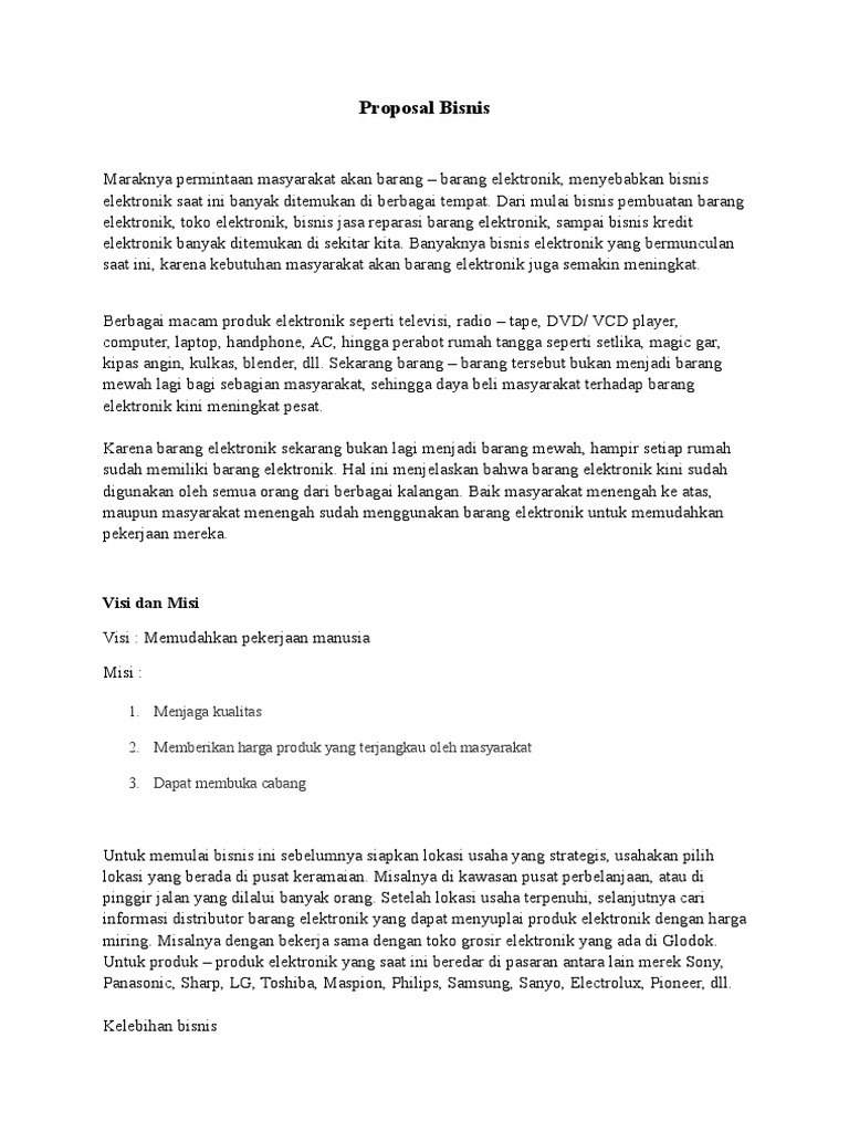 Contoh Proposal Usaha Elektronik