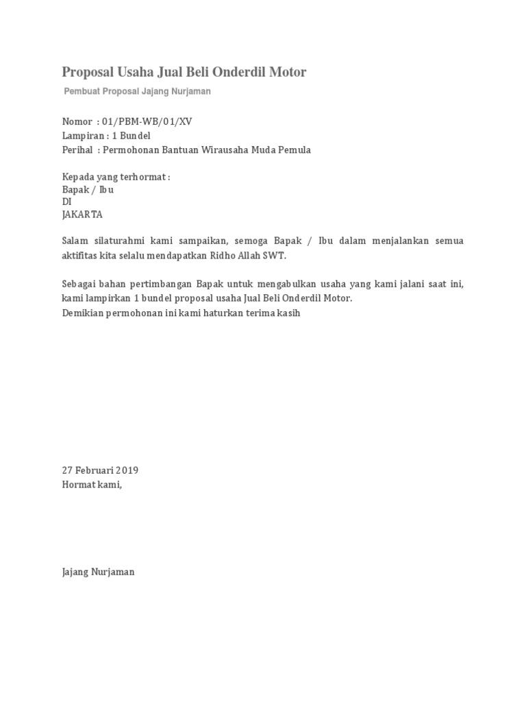 contoh proposal usaha toko sparepart motor