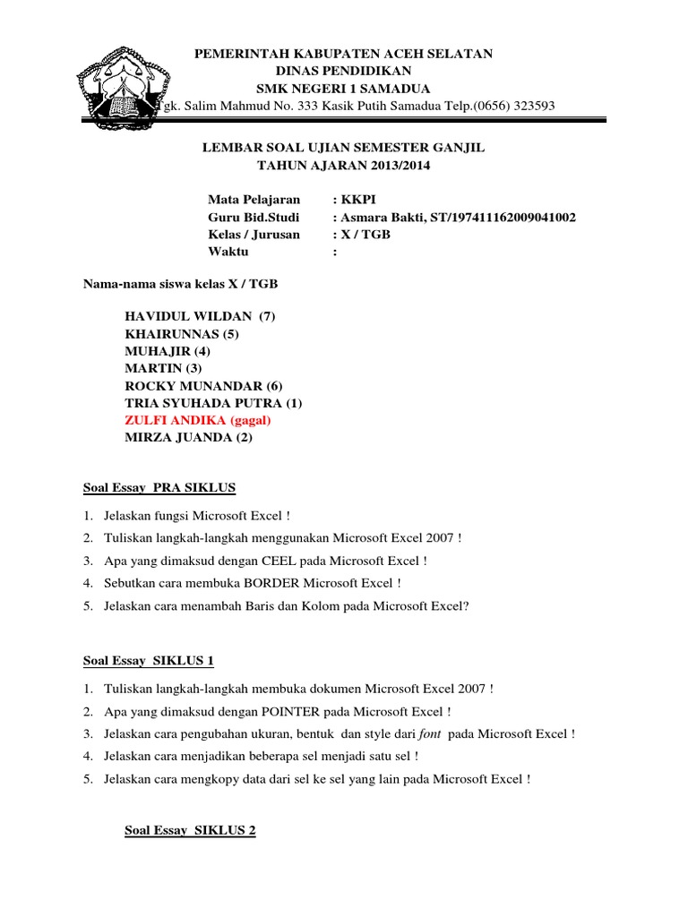 Soal Essay Excel Dan Jawaban | Zfwuzm.navisbanp.info