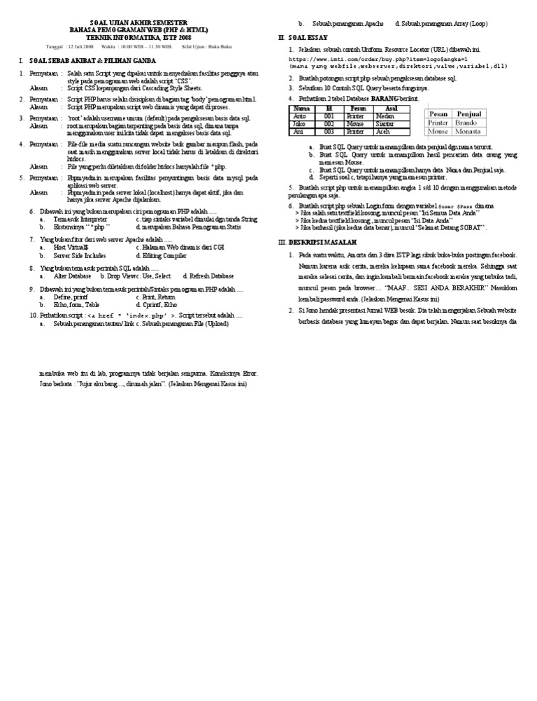 Contoh Soal Pemrograman Web Beserta Jawabannya - Contoh Soal Terbaru