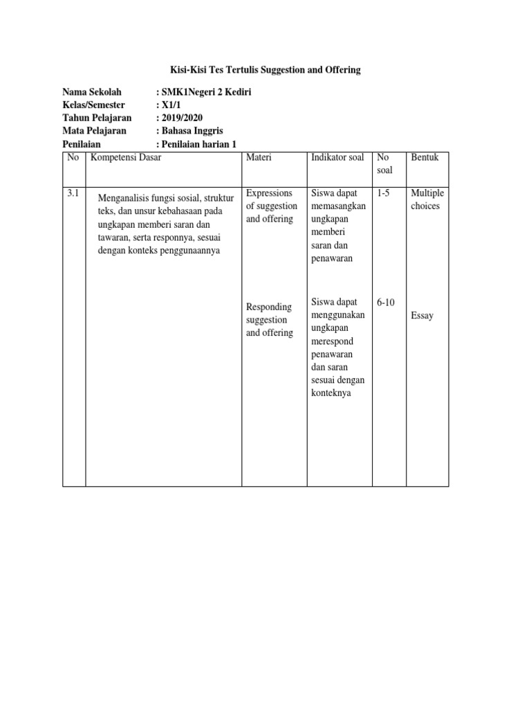 Contoh Soal Essay Suggestion And Offer Beserta Jawabannya - Contoh Soal Terbaru