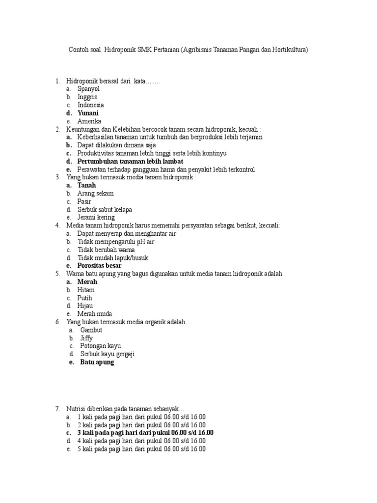 Contoh Soal Tentang Hidroponik Beserta Jawabannya - Bagikan Contoh