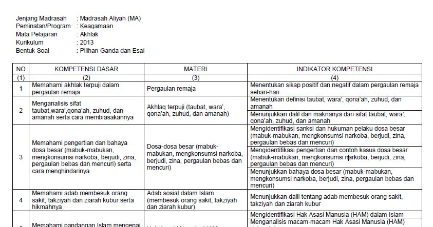1) Kisi-kisiI_PASPAI_KLS X_GANJIL_2018-Final.doc - KISI-KISI UJIAN AKHIR SEMESTER PENDIDIKAN AGAMA ISLAM DAN BUDI PEKERTI KELAS X KURIKULUM 2013 MGMP | Course Hero
