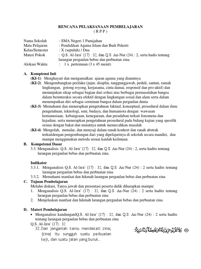 Pendidikan Agama Islam dan Budi Pekerti X