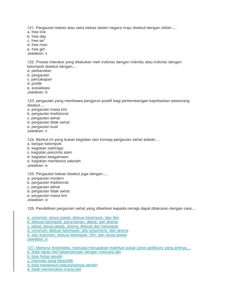 Soal Pilihan Ganda Tentang Pergaulan Bebas | Guru Paud