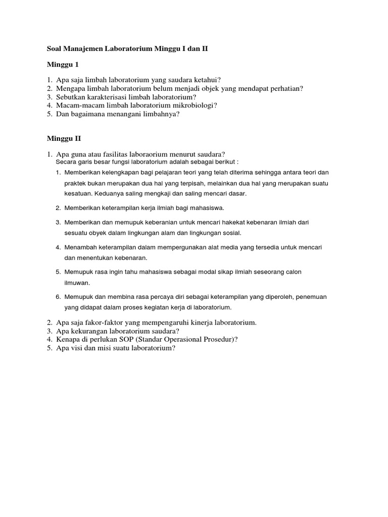 Soal Manajemen Laboratorium Minggu I dan II.docx