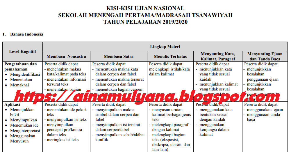 Kisi-kisi UN 2020 SMP/MTs: Bahasa Indonesia, Inggris dan …