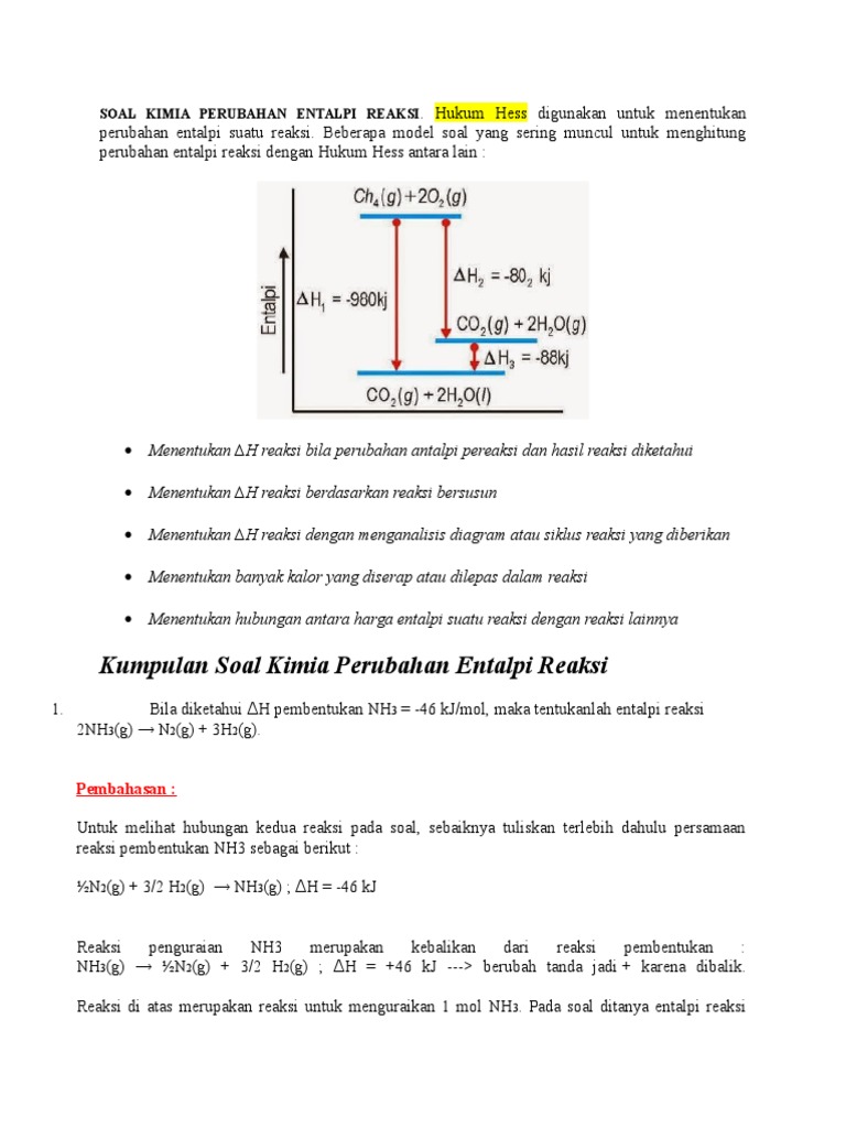 Contoh Soal Perubahan Entalpi Reaksi Dan Pembahasannya - Contoh Soal Terbaru