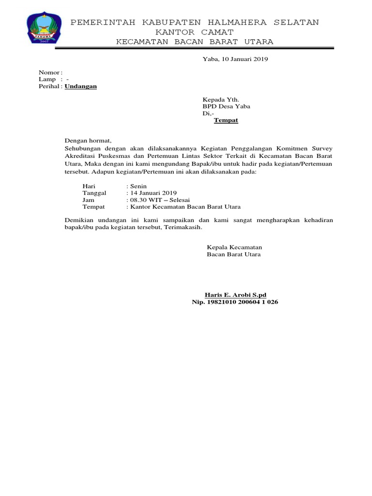 Contoh Surat Undangan Untuk Camat