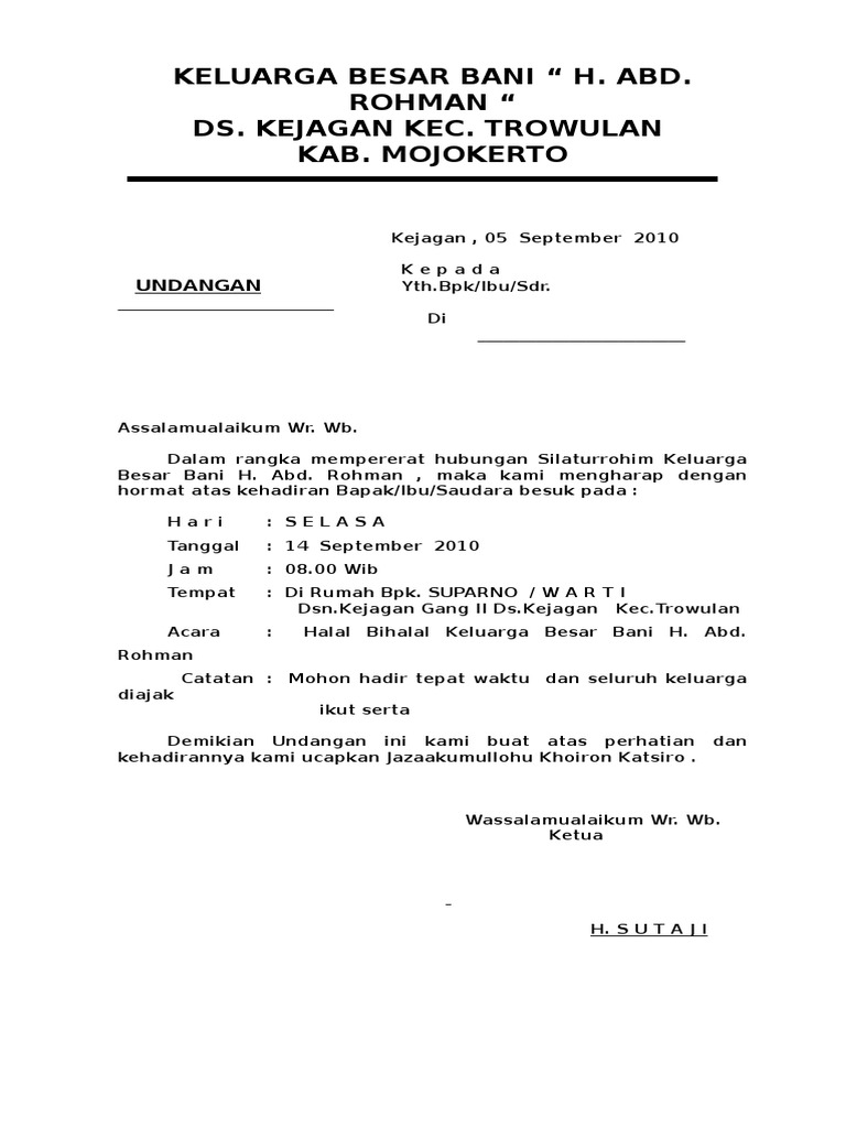 Contoh Undangan Reuni Keluarga Besar Doc