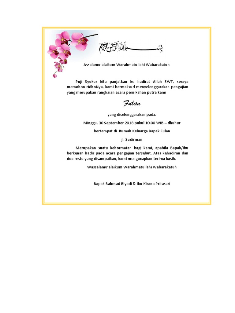 DOC) Contoh Surat Undangan Syukuran Pernikahan | Liwaassin Lampbara - Academia.edu