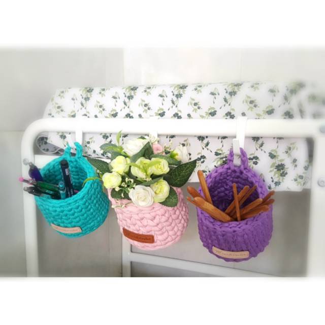 Keranjang rajut tempat pensil cover pot tanaman bunga hias | Shopee Indonesia