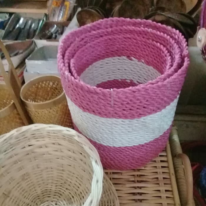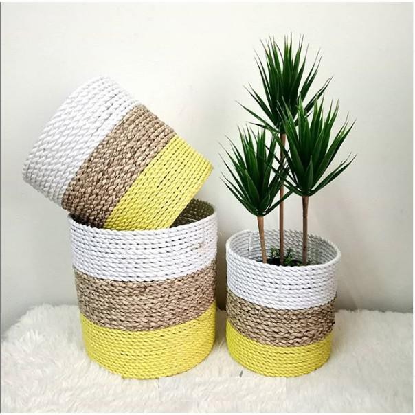 COVER POT BUNGA ANYAMAN SEAGRASS KOMBI SINTETIS COVER VAS BUNGA HIAS KERANJANG POT ISI 3 PCS UK SML | Shopee Indonesia