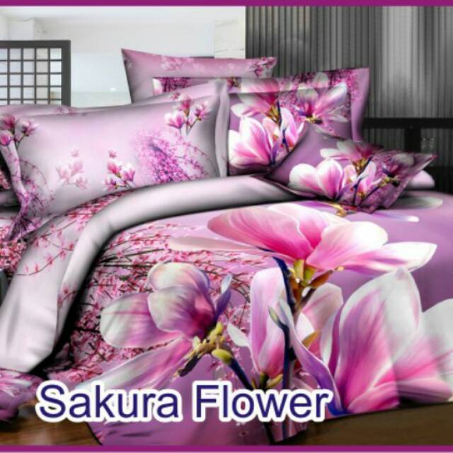 Bed cover set bunga sakura panel 3D uk.180x200 | Shopee Indonesia
