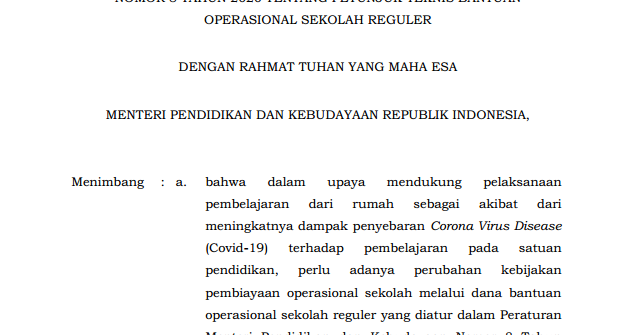 Juknis BOS Terbaru 2020 (Sesuai Permendikbud Nomor 19 Tahun 2020) - panduandapodik.id