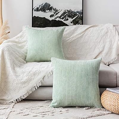 Home Brilliant Throw Pillow Cover Super Soft Striped Velvet Cushion Cover for Living Room Sage Green, 20" x 20" (50cm), Mint: Amazon.sg: Home