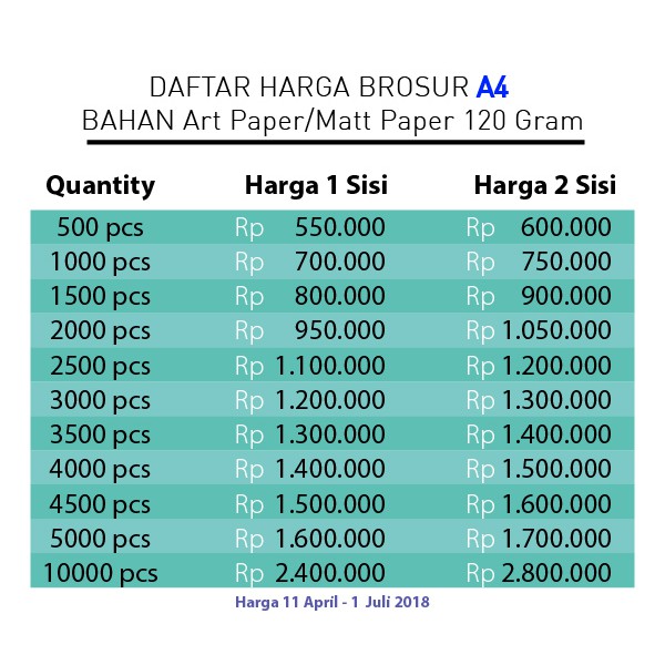 Daftar Harga Brosur A4 2019
