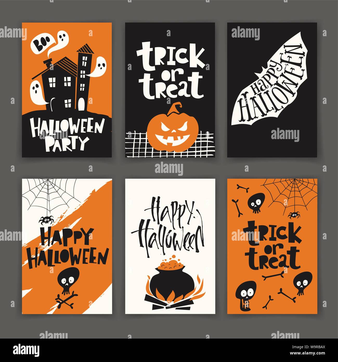 Set of Halloween poster designs with cute cartoon elements Stock Vector Image & Art - Alamy