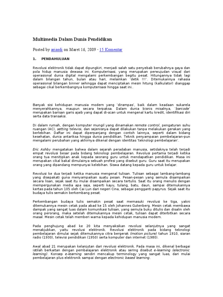Multimedia Dalam Dunia Pendidikan: Posted by on Maret 16, 2009 ·