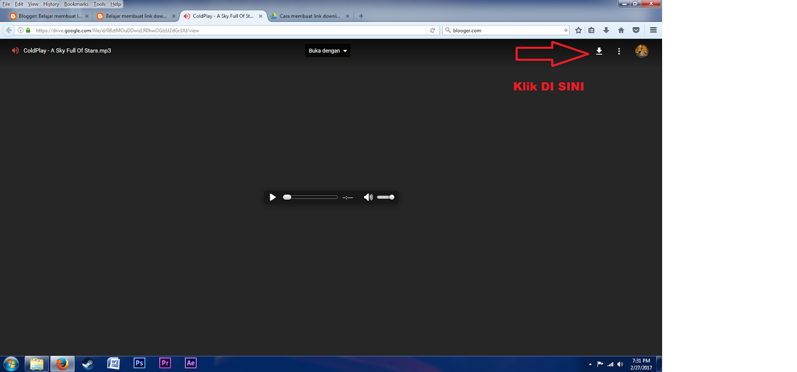 Belajar membuat link download : Download lagu Coldplay A Sky full of star