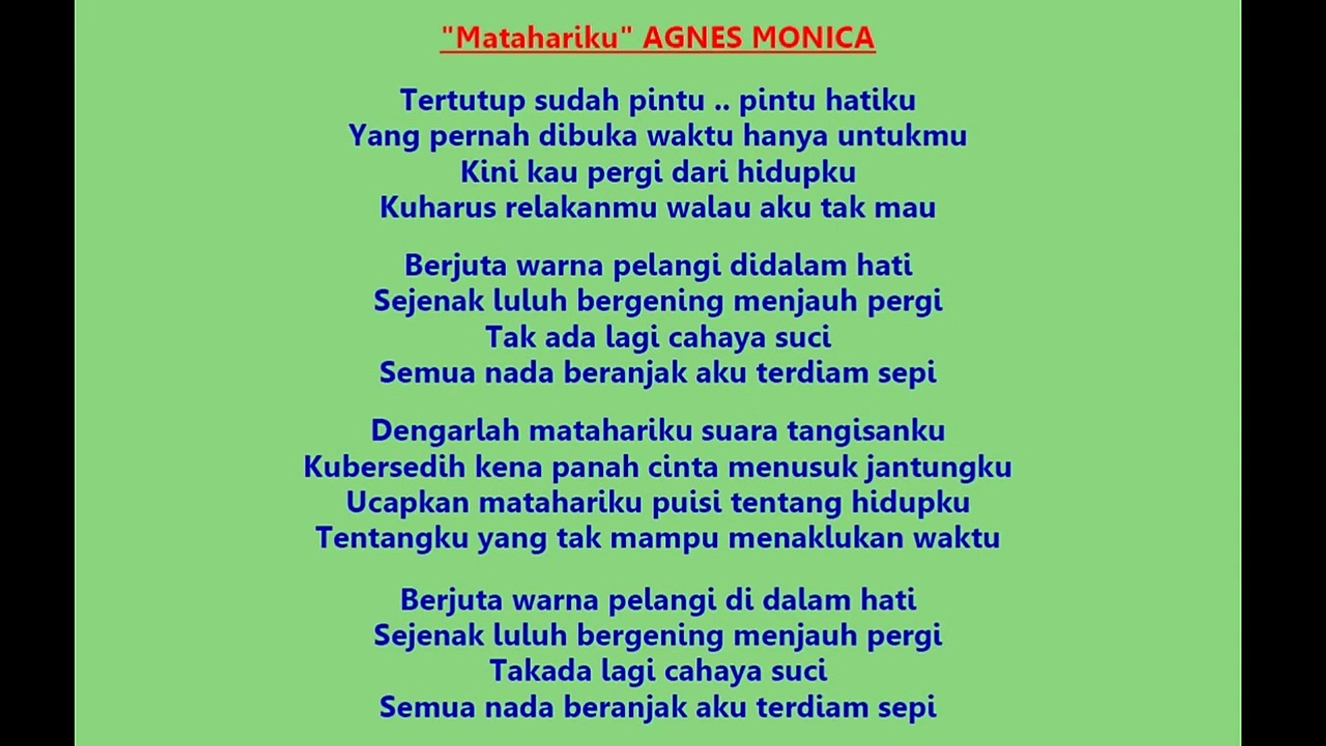 AGNES MONICA MATAHARIKU LIRIK - YouTube