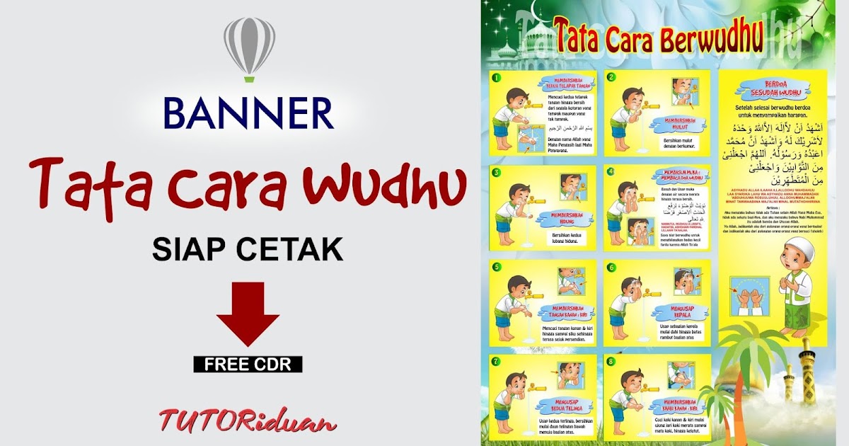 Banner Tata Cara Wudhu Format CorelDraw (Free CDR) Siap Cetak - TUTORiduan.com