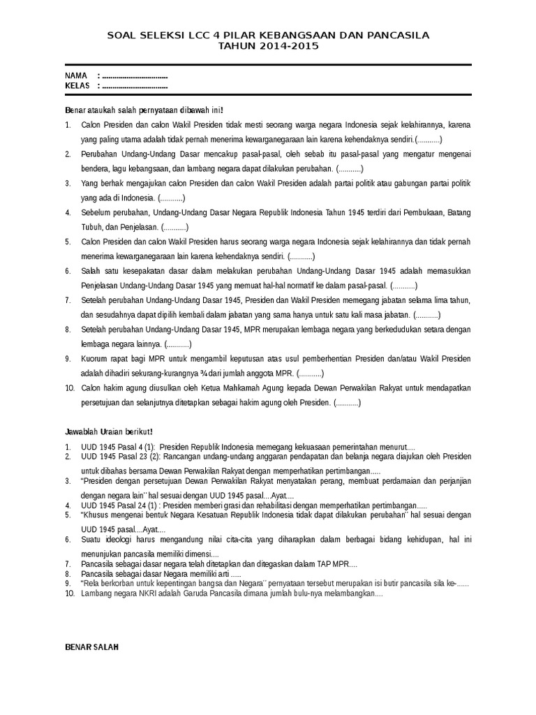 WHYDAMARAL: Soal dan Jawaban Lomba Cerdas Cermat 4 PILAR KEBANGSAAN