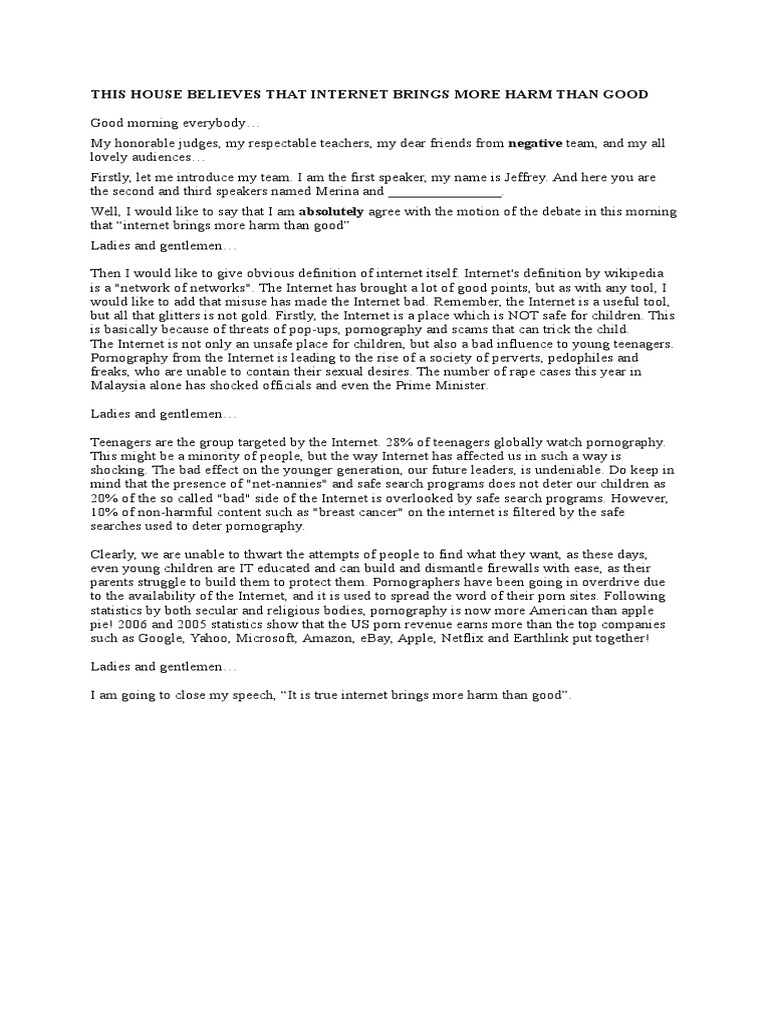 Internet Brings More Harm Than Good - DebateWise