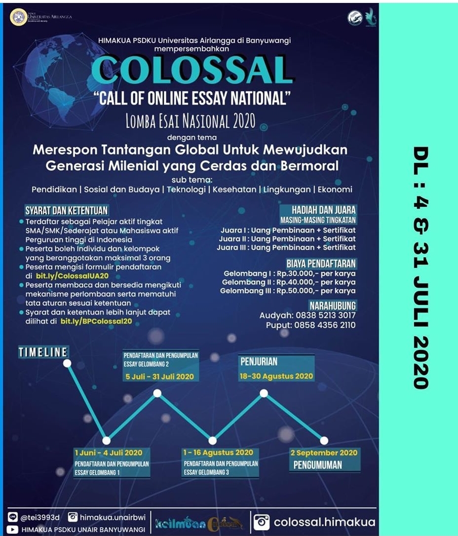 PORTAL KOMPETISI DAN BEASISWA: COLOSSAL (Call Of Online Essay Nasional ) Universitas Airlangga
