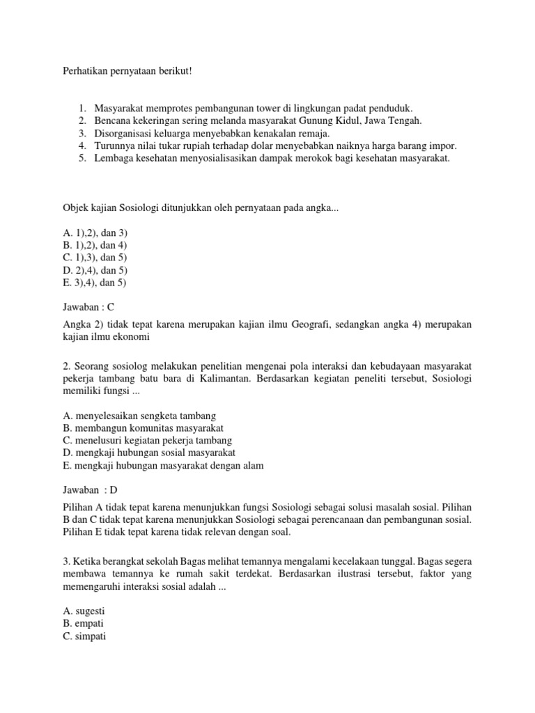 Contoh soal UN perubahan sosial dan jawabannya – Soalfismat.com