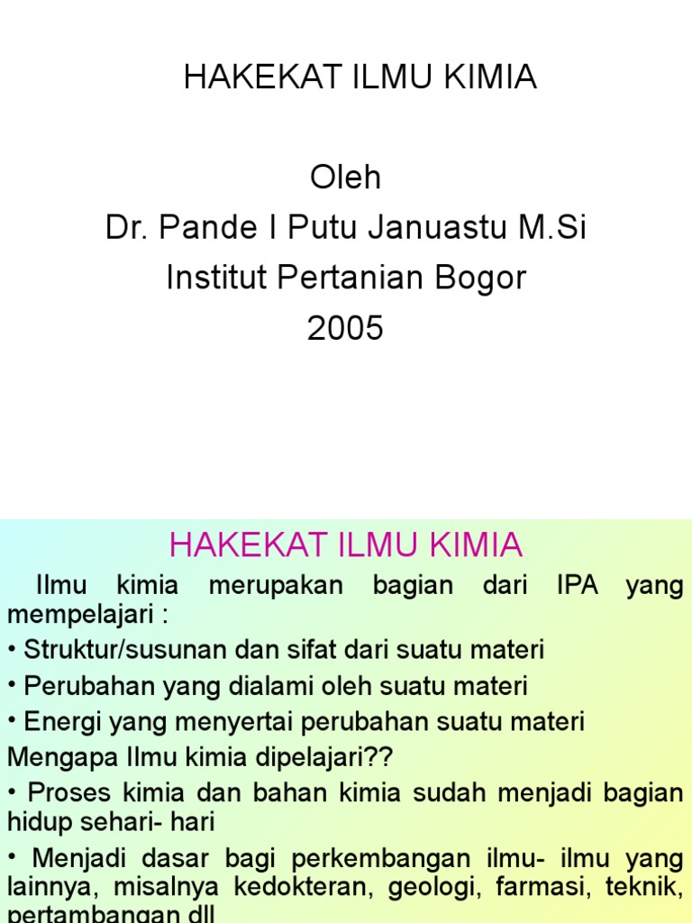 Power Point Hakikat dan Peranan Ilmu Kimia dalam Kehidupan Sehari …