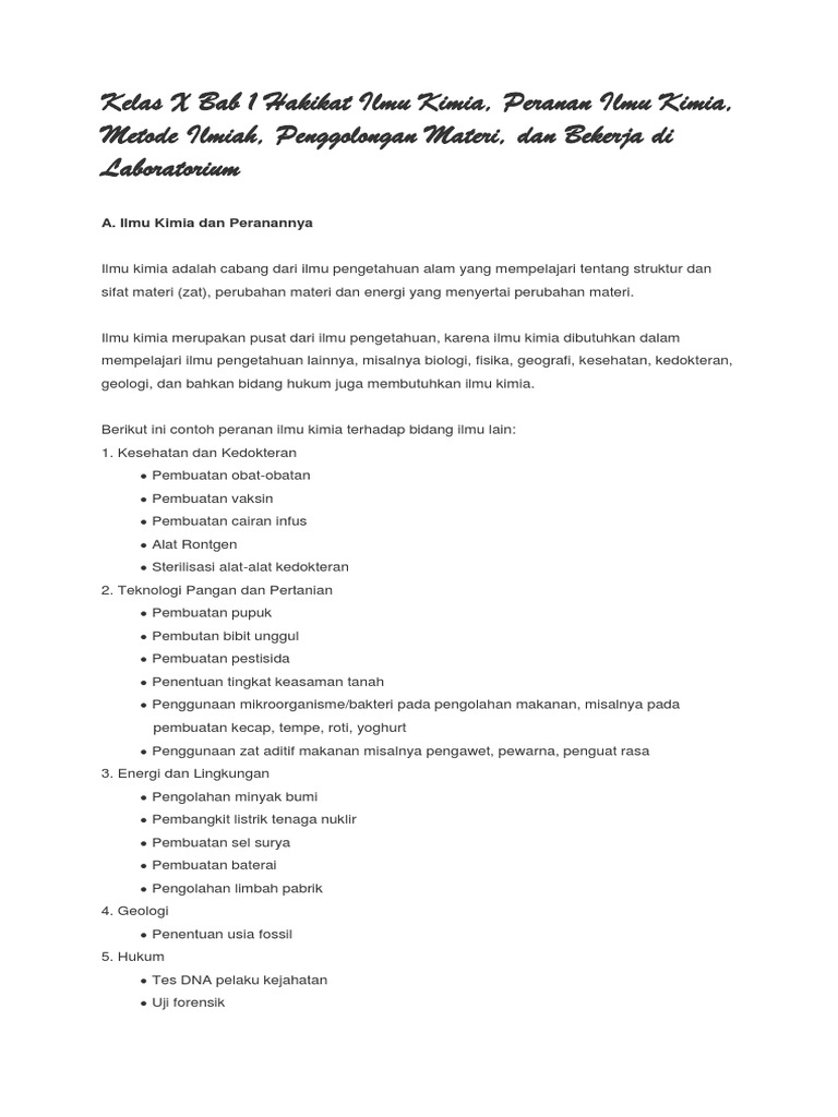 nuryanto: Kelas X Bab 1 Hakikat Ilmu Kimia, Peranan Ilmu Kimia …