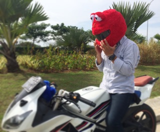 Menggemaskan, Pemotor Berhelm Elmo Bikin Heboh di Jalanan