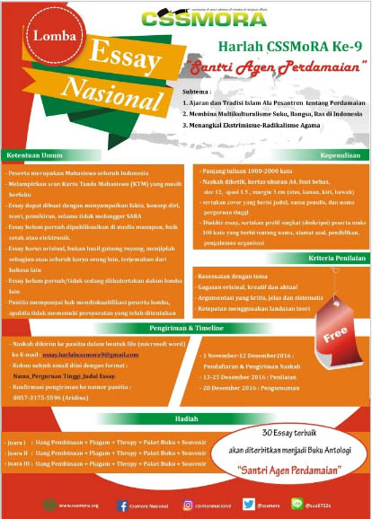 Lomba Menulis Esai Hadiah Uang dan Trophy - Harlah CSSMoRA | Info Lomba Menulis