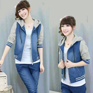 Jaket Jeans Kombinasi Lengan Sweater di Lapak Pusat Jeans Bandung | Bukalapak