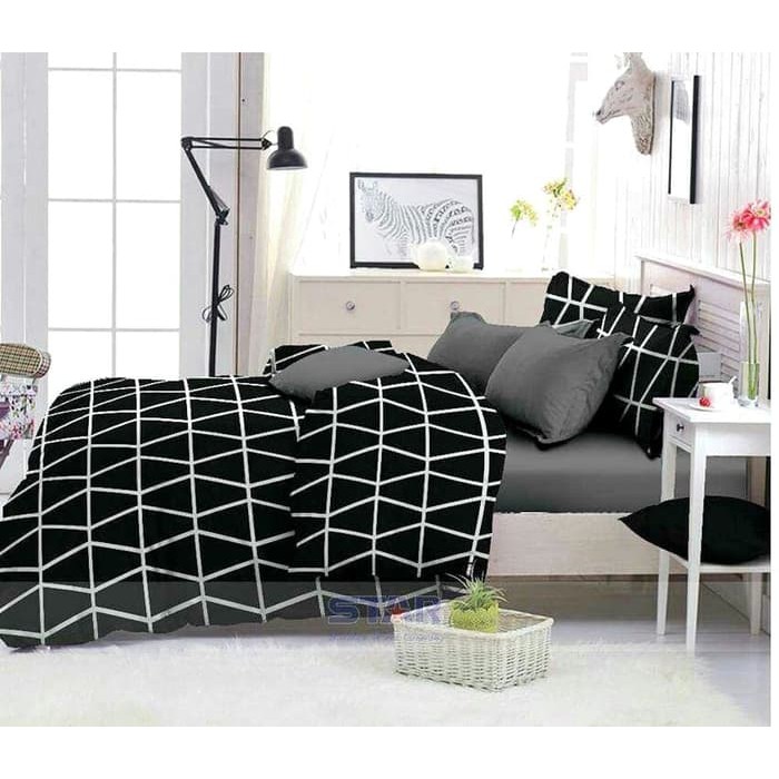 Jaxine Sprei Homemade Murah Bahan Katun Motif Dewasa - Prisma Black | Sprei Murah | Shopee Indonesia