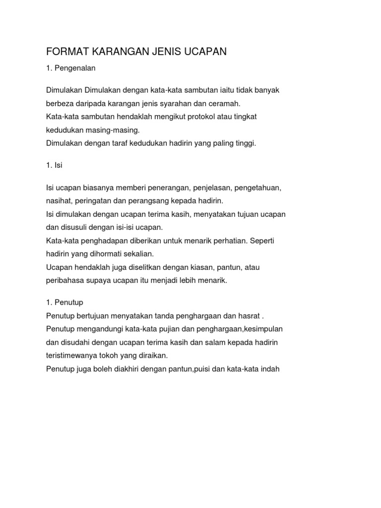 Format Karangan Jenis Ucapan