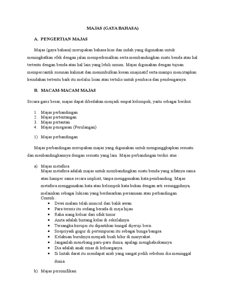 DOC) Kumpulan majas beserta contohnya | Yuki Adimahaini - Academia.edu