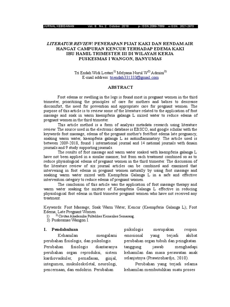 Jurnal Edema Fisiologis dan rendam Air hangat Campuran Kencur …
