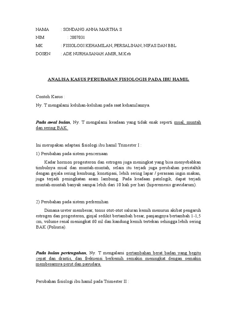 Analisa Kasus Perubahan Fisiologis Pada Ibu Hamil