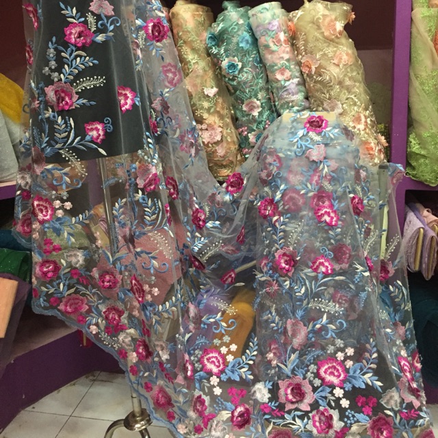 kain brokat tulle full bordir bunga - kain brokat 2 warna - kain …