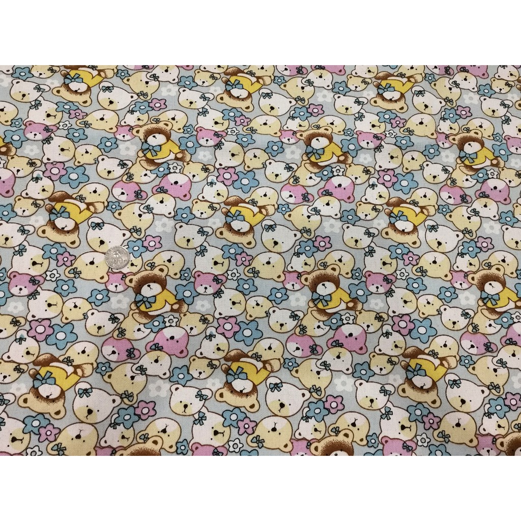ENGLISH Cotton Canvas TEDDY BEAR BEARS COLORFUL FLOWER Fabric Kain …