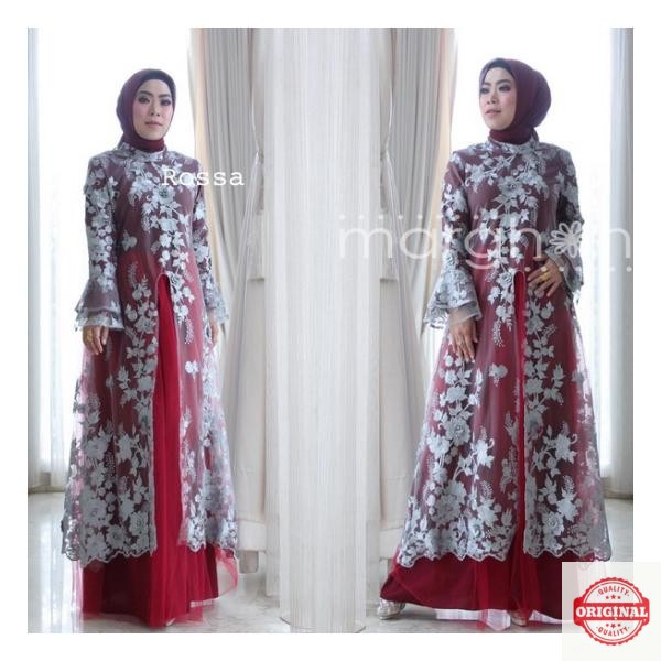 Gamis pesta 3 lapis kain mewah tulle bordir elegan MARGHON ROSSA. | Shopee Indonesia