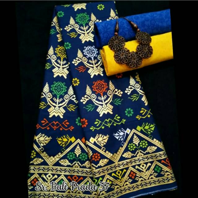 Kain Batik Pekalongan Sarung Bali Prada 37 Biru | Shopee Indonesia