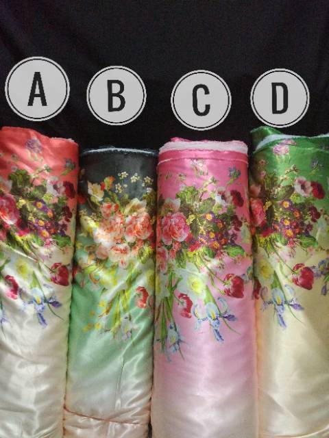 KAIN SATIN MOTIF BUNGA / Harga per 1/2 meter | Shopee Indonesia