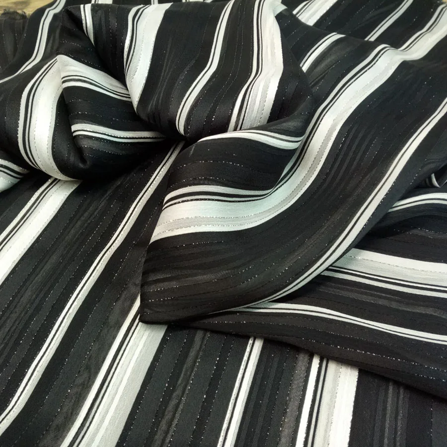 Mengkilap sifon silky hitam strip putih mutiara silver metallic kain menjatuhkan lembut bernapas gaun DIY blus kain|Kain| - AliExpress