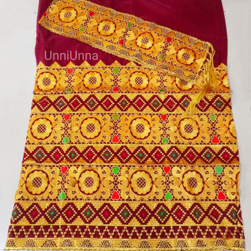 Tapis Bordir 3 Tingkat Kain Etnik Marun Set Sarung Selendang …