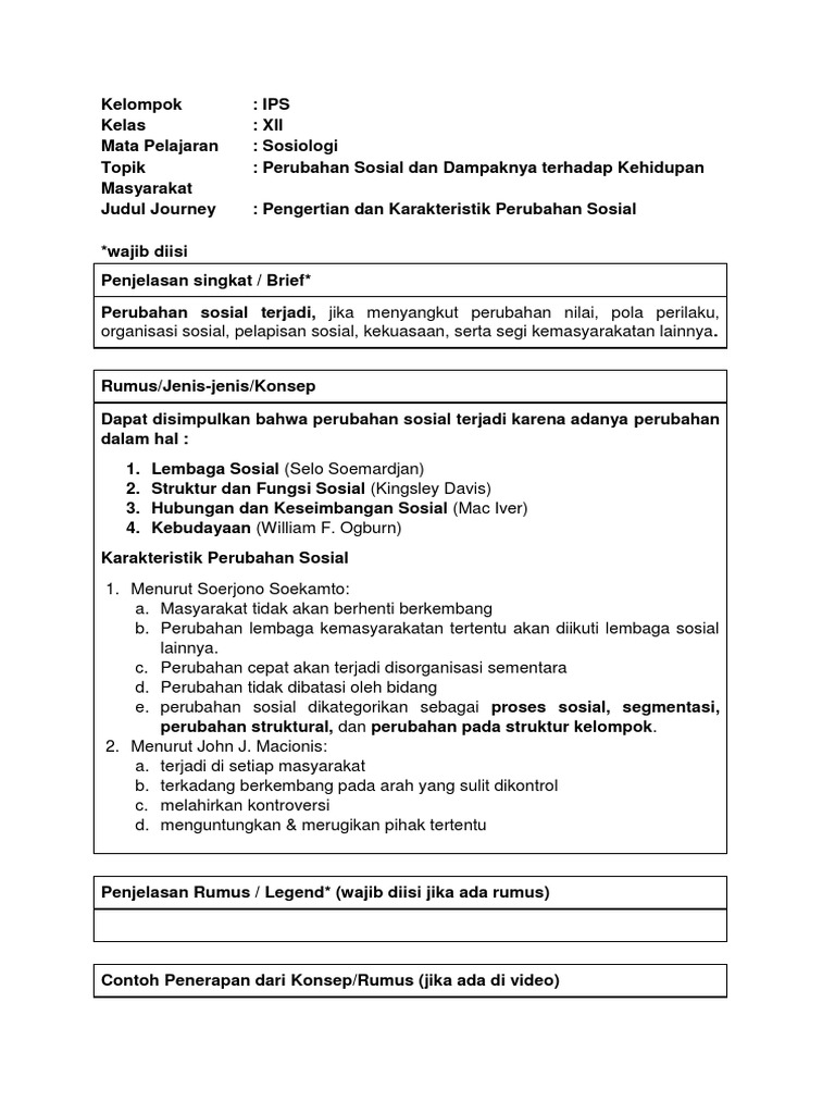XII KTSP & K-13. Kelas PERUBAHAN SOSIAL. A. Hakikat dan Karakteristik Perubahan Sosial. Tujuan Pembelajaran - PDF Free Download