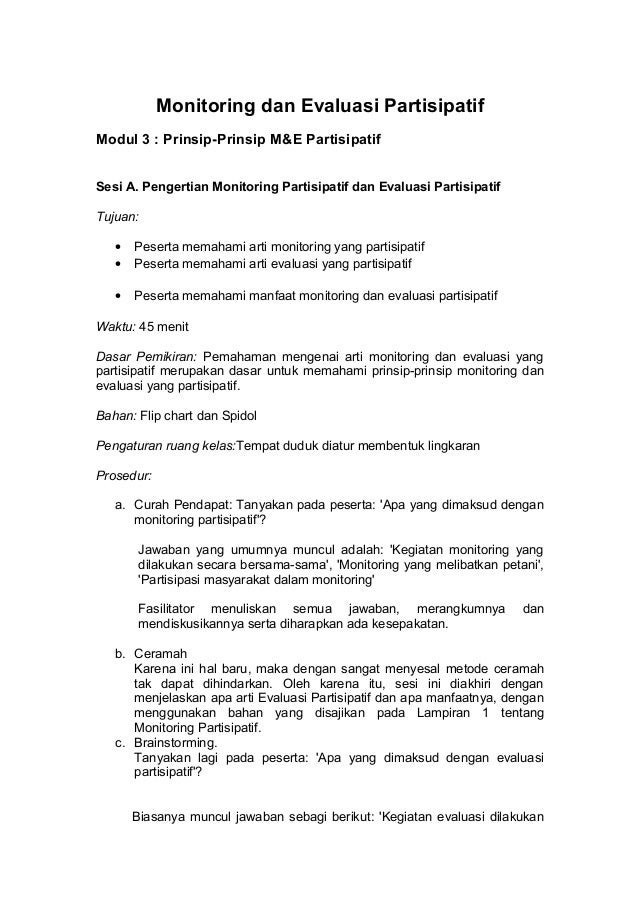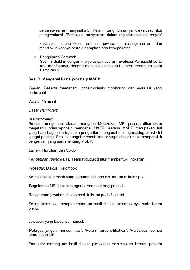 2) modul pelatihan monitoring dan evaluasi partisipatif