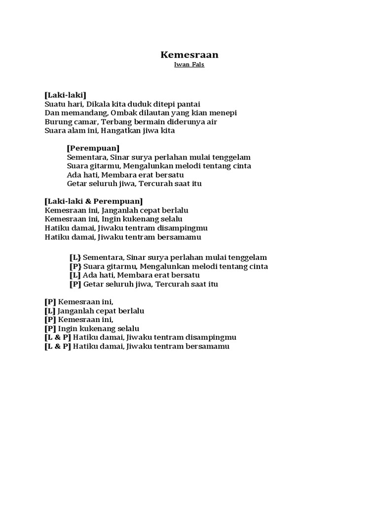 DOC) LIRIK LAGU KEMESRAAN | Iwangk Makassar - Academia.edu